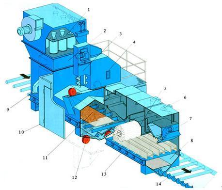 其中通過式拋丸機是發(fā)往河北邯鄲,客戶主要生產(chǎn)污水處理設備,為提升產(chǎn)品表面處理效果,所以采用拋丸機進行表面清理,拋丸后再進行表面涂裝,提高產(chǎn)品表面涂層強度。